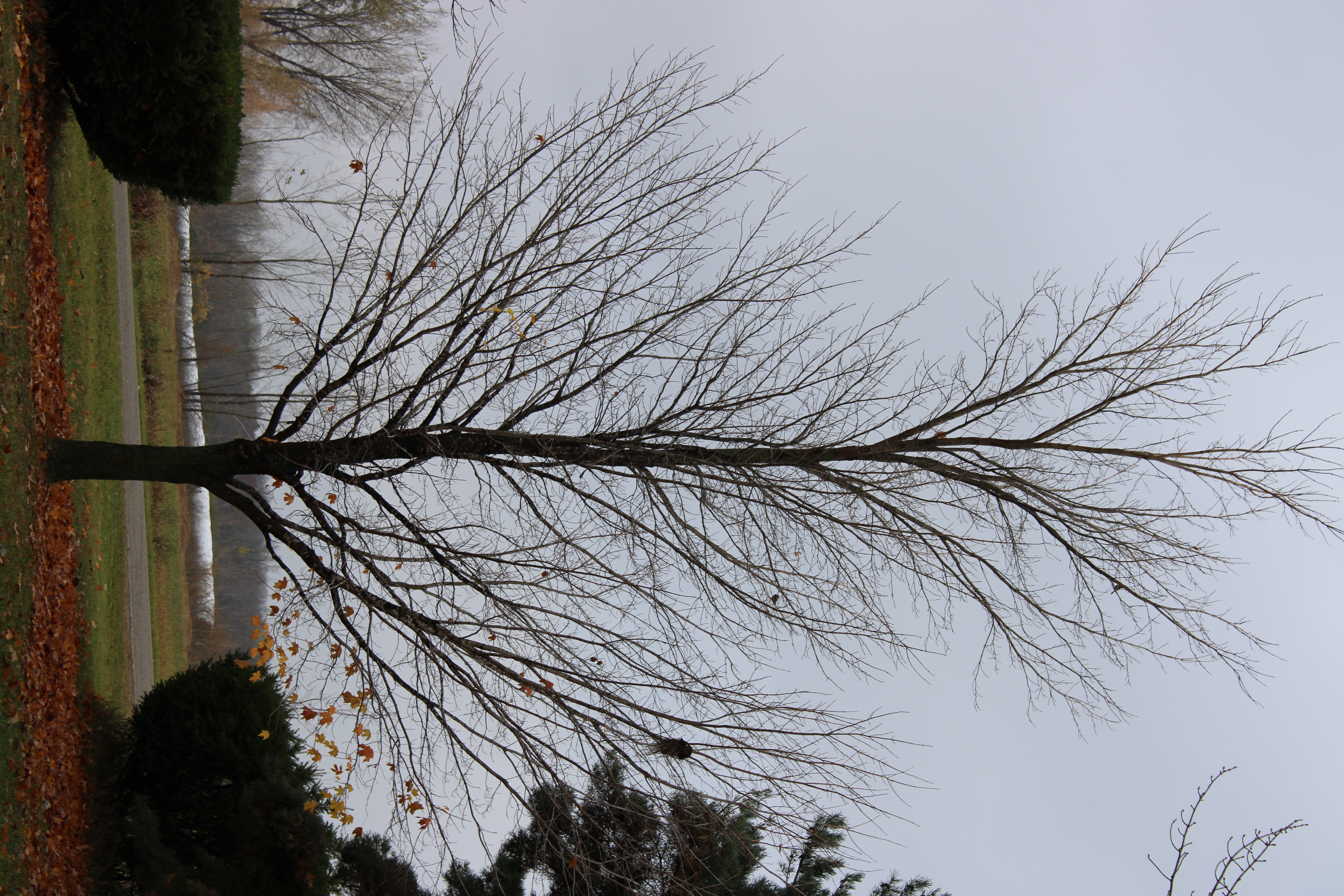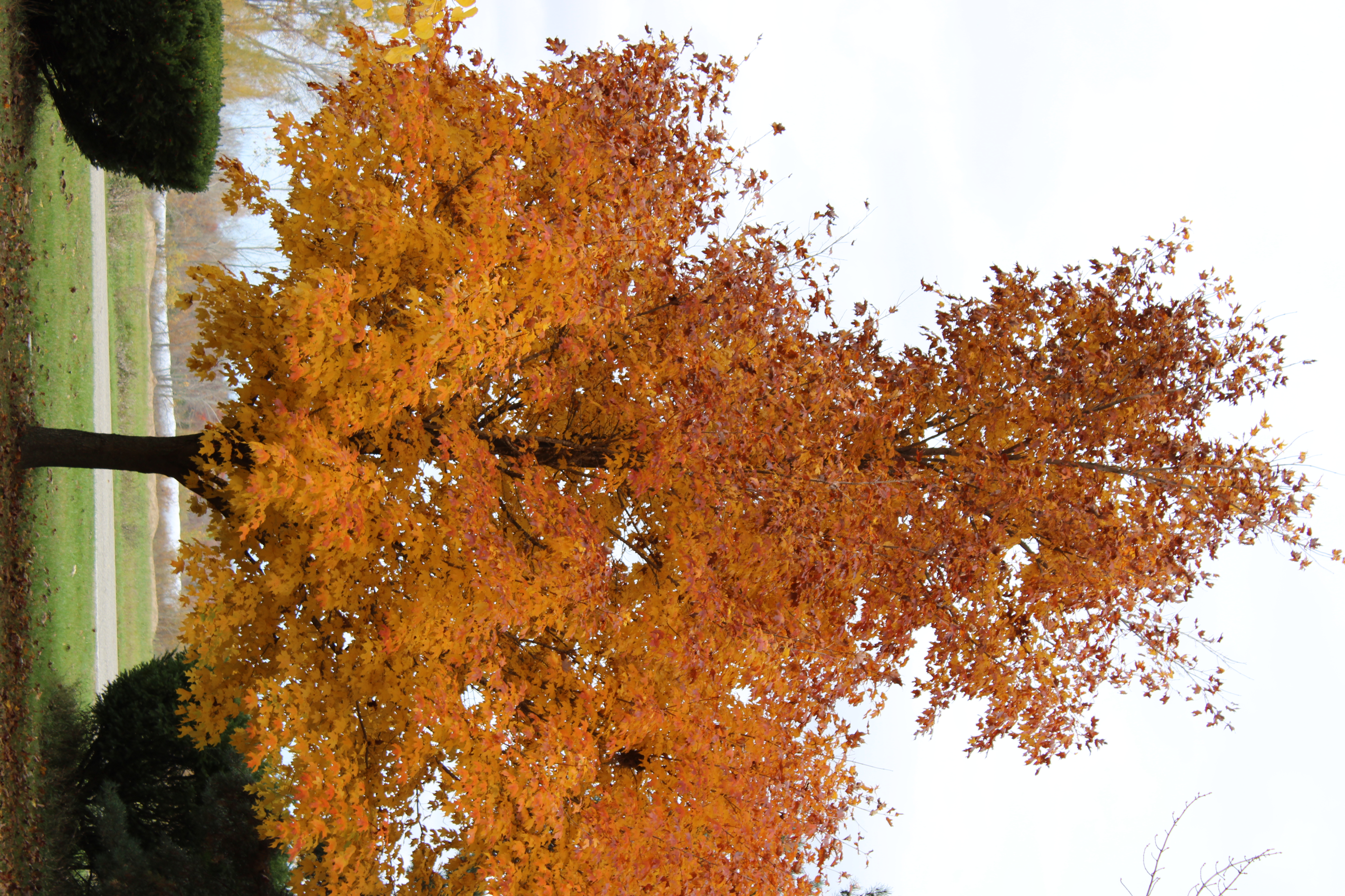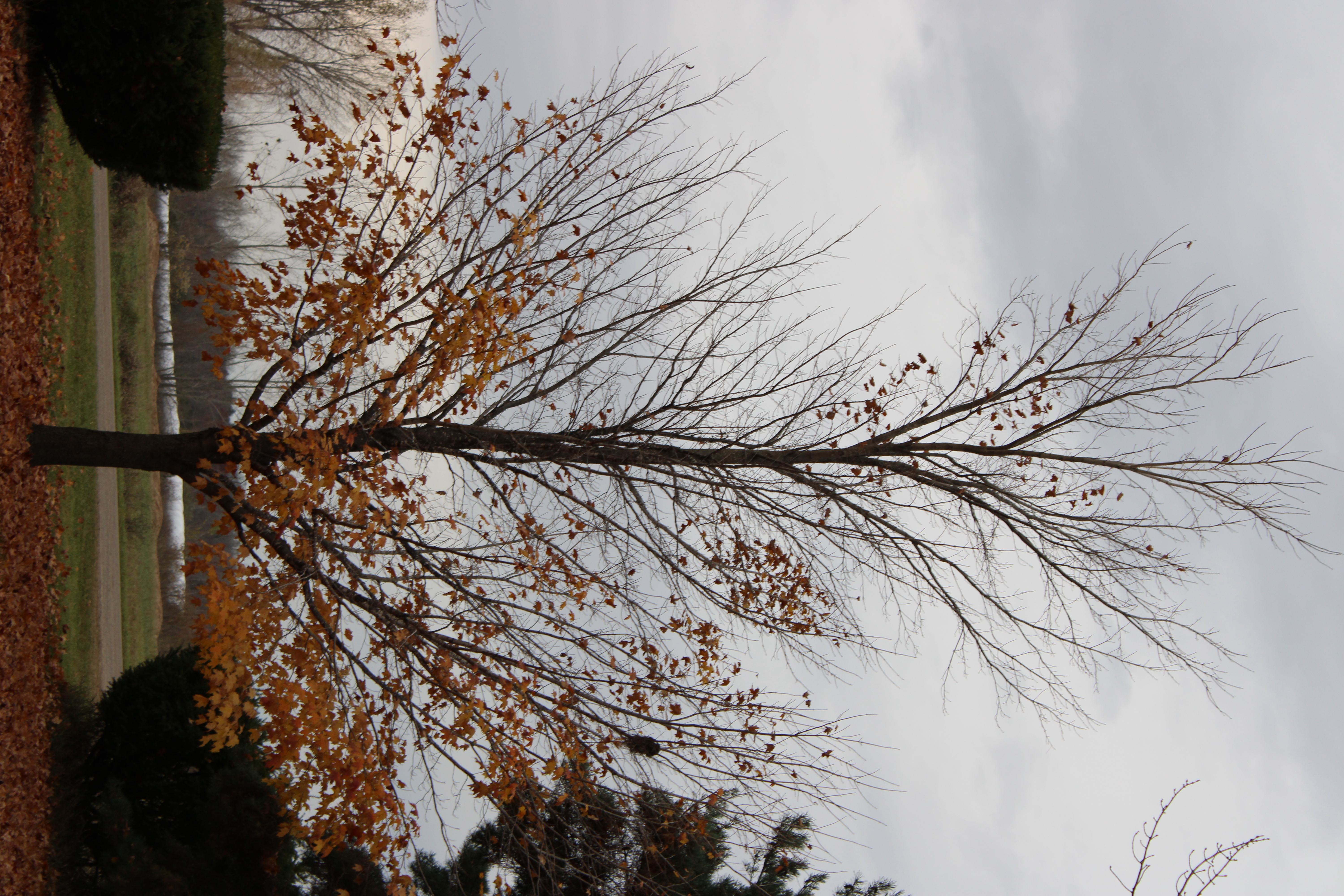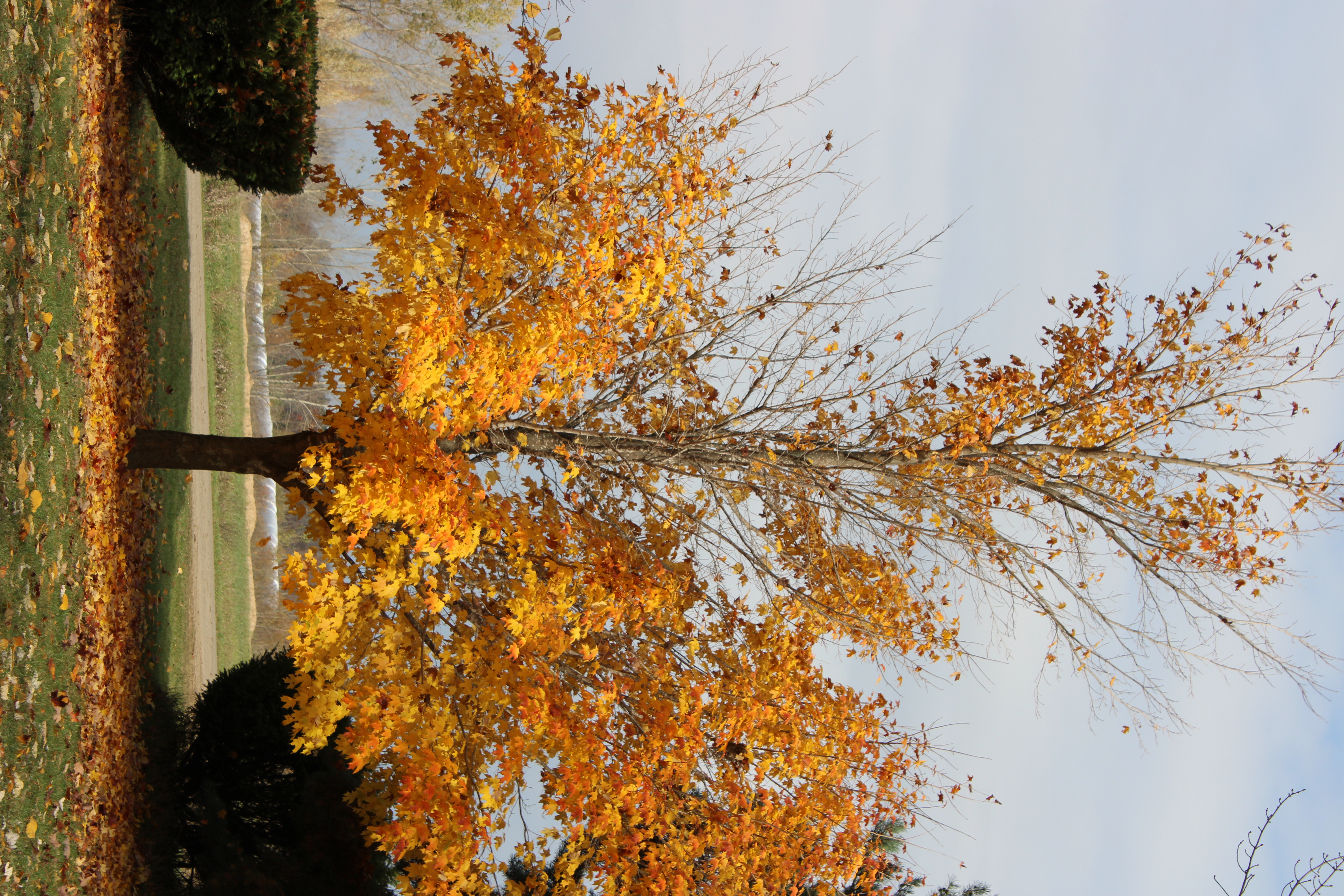I took these pictures of my sugar maple tree as it lost its leaves during a quick couple weeks during the fall of 2023. The first photo was taken on Sunday, October 29 and the final picture was taken on Thursday, November 9. The iridescent orange (quite eye-catching when there is some sun) quickly fades and the leaves fall even quicker as wind, rain, and cold batter the spent leaves.
